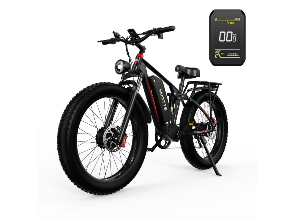 Duotts S26 je robustný elektrický fat bike so silným dvojitým 750 W motorom a širokými 26" pneumatikami, ideálny do každého terénu.