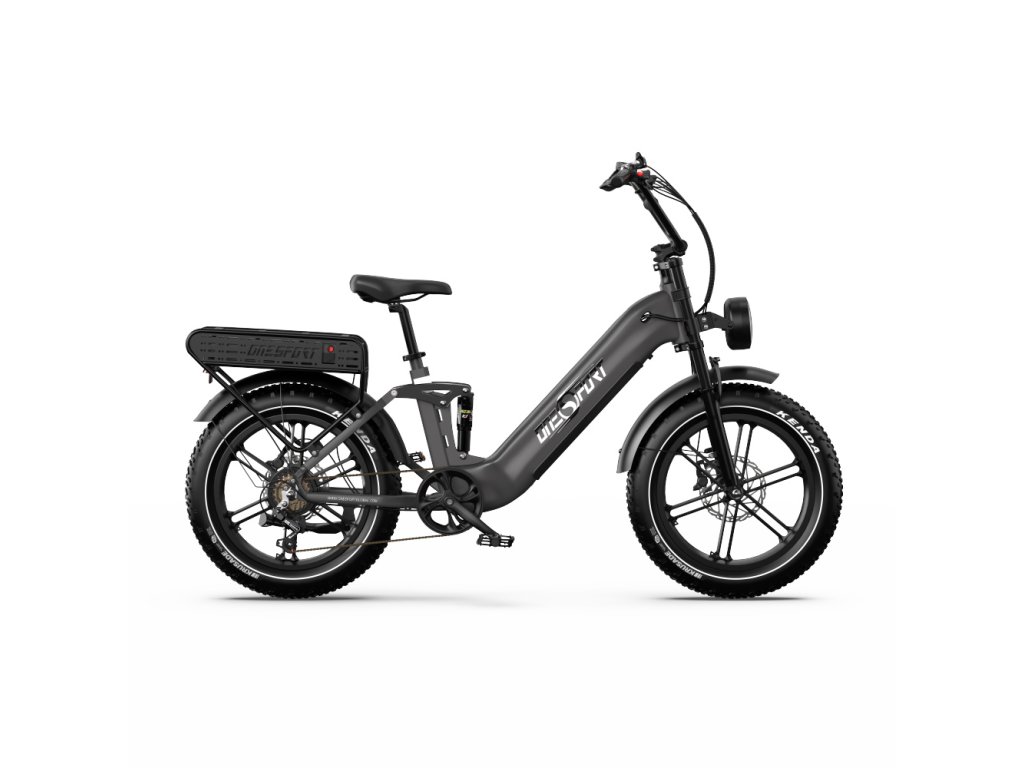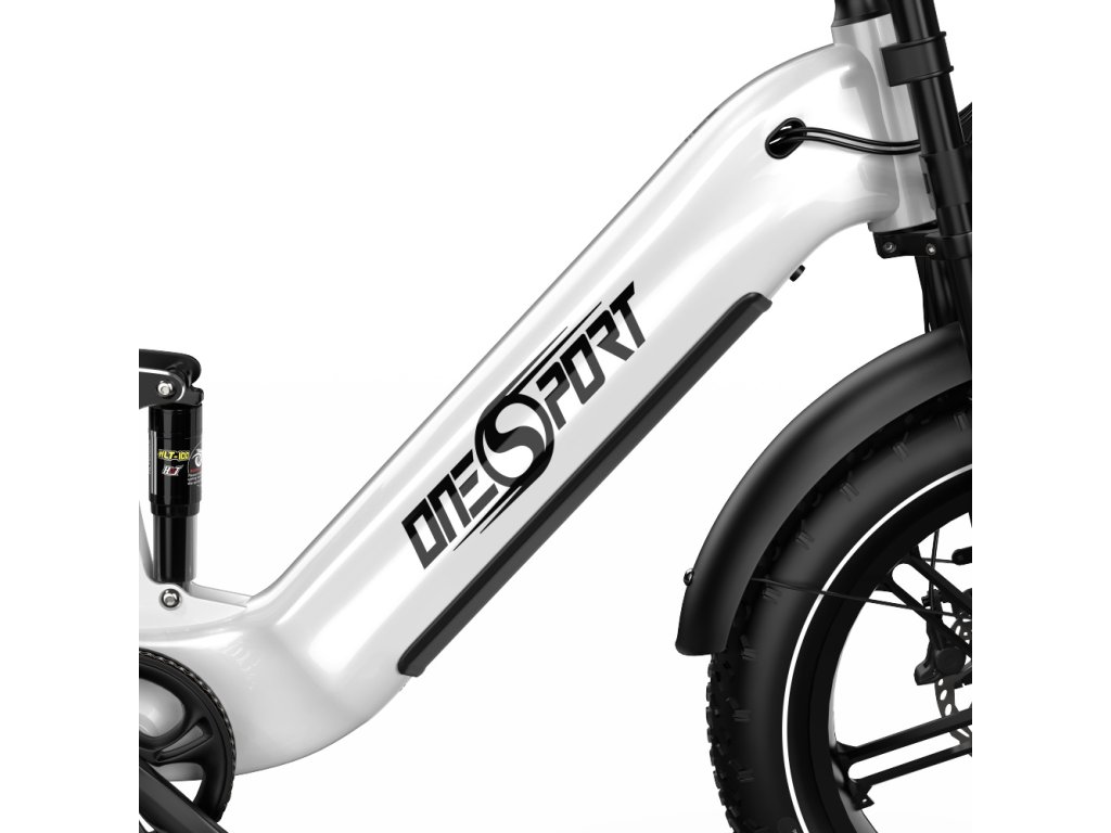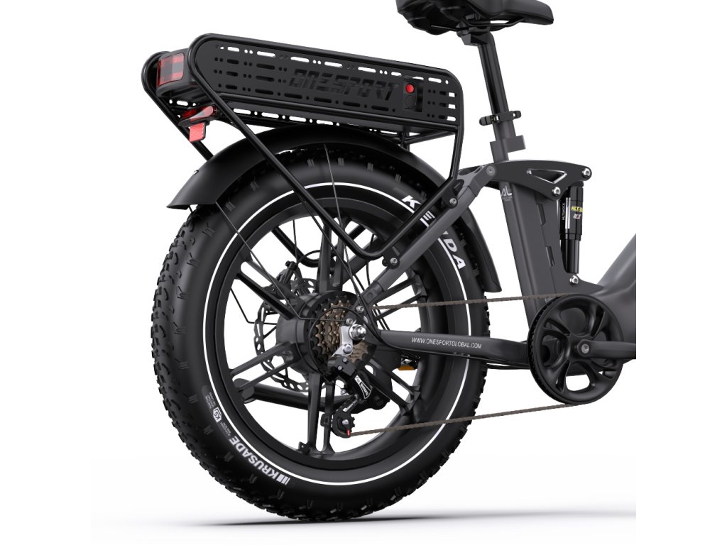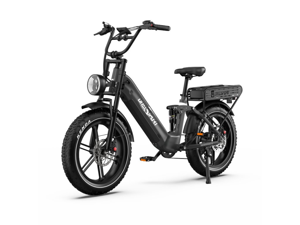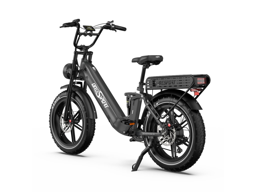 OneSport OT08 Pro je výkonný elektrický bicykel s plným odpružením a širokými 20" × 4,0" pneumatikami. S motorom 250W a dvojitou batériou 48 V / 18 Ah ponúka dojazd až 120 km, ideálny pre mestskú mobilitu aj terénne dobrodružstvá.