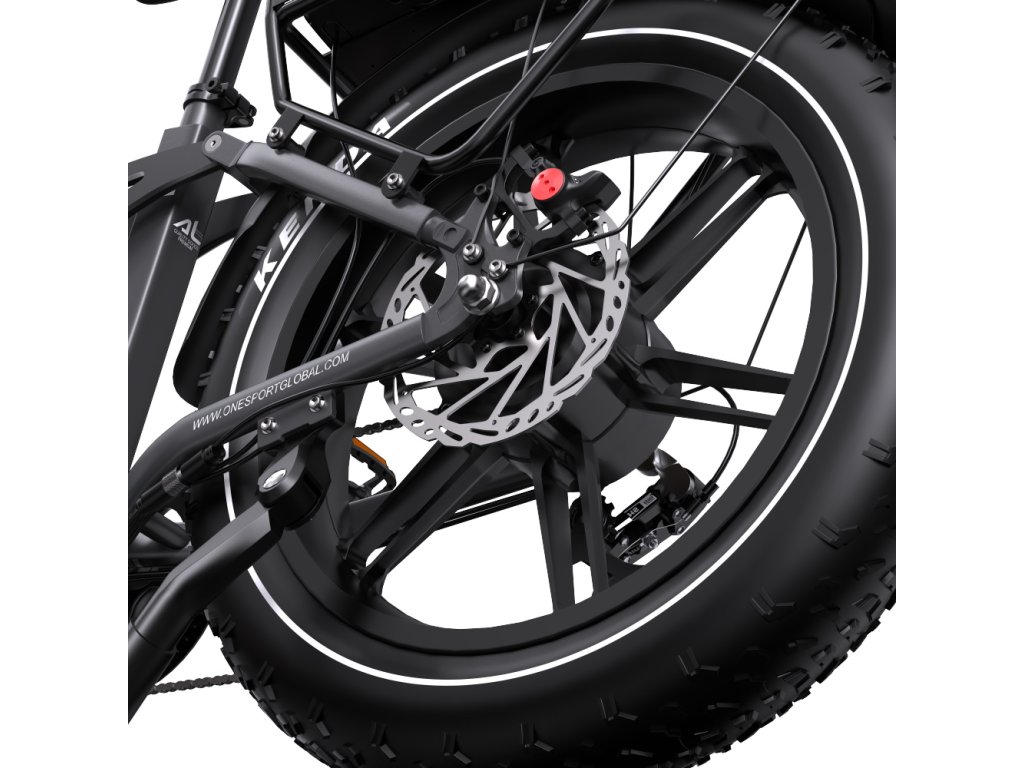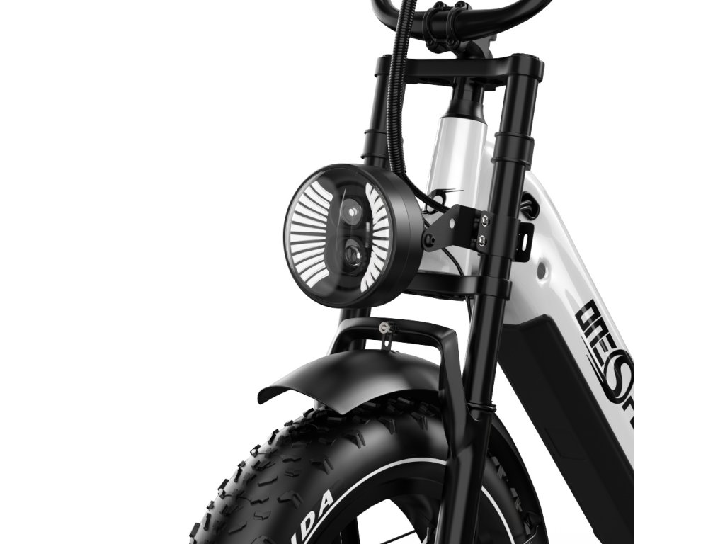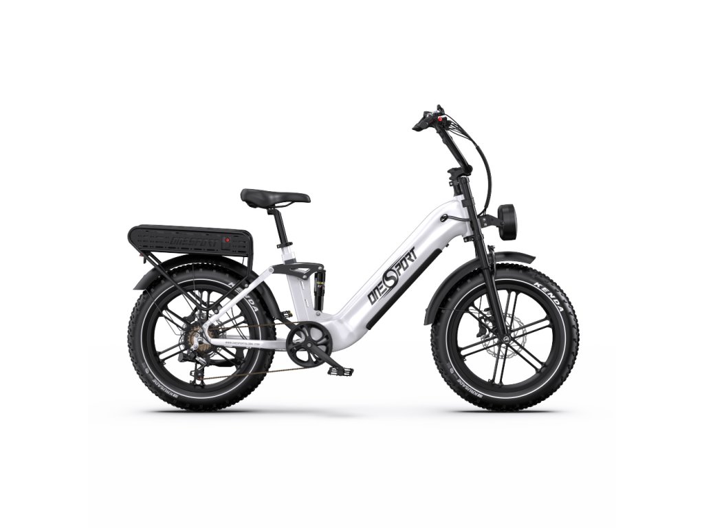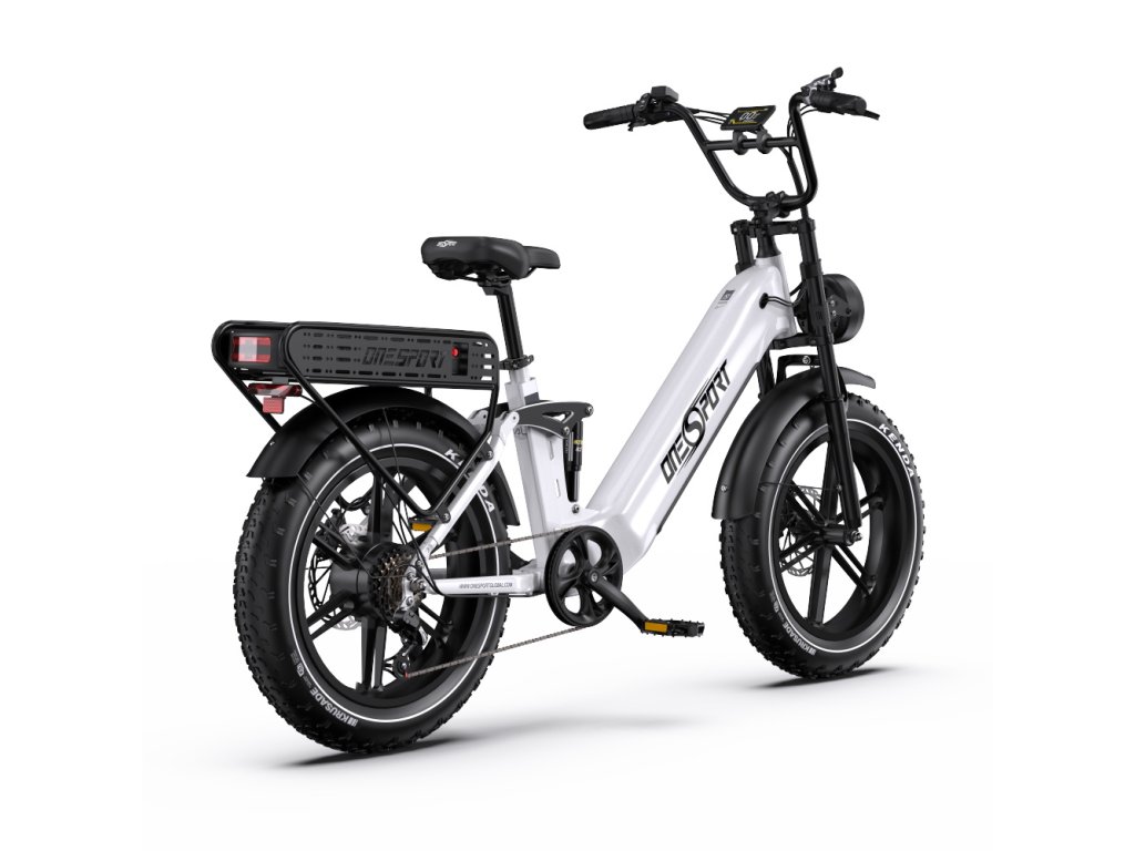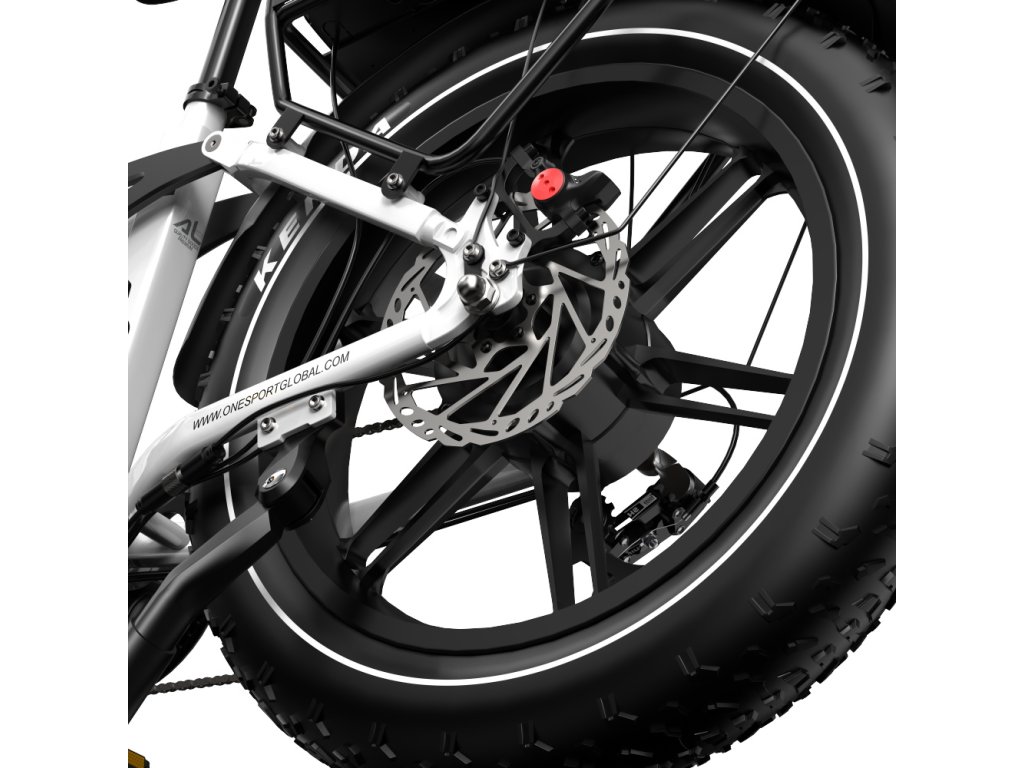 OneSport OT08 Pro je výkonný elektrický bicykel s plným odpružením a širokými 20" × 4,0" pneumatikami. S motorom 250W a dvojitou batériou 48 V / 18 Ah ponúka dojazd až 120 km, ideálny pre mestskú mobilitu aj terénne dobrodružstvá.
