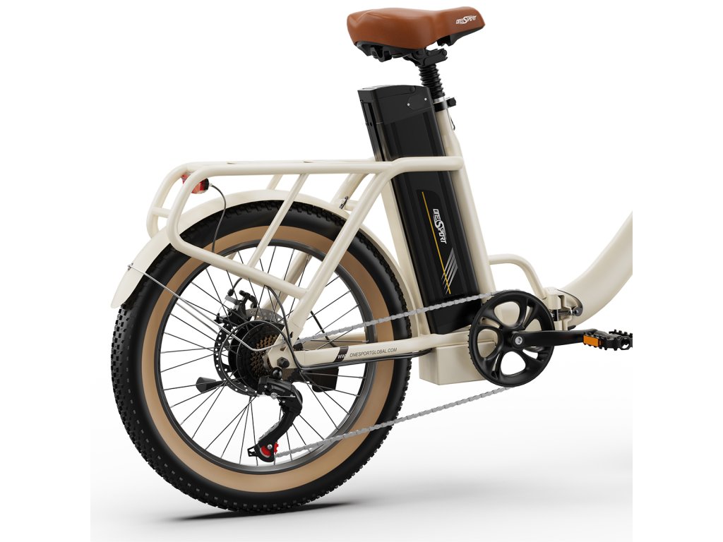 OneSport OT16-2 spája pohodlie a praktickosť: veľká 48 V/17 Ah batéria dá v režime asistencie do 120 km, prípadne ~60 km v čisto elektrickom režime. 250 W zadný motor (ANANDA, 40 Nm) dosahuje 25 km/h. Skladací rám uľahčí prenášanie a skladovanie, 20×3,0″ plášte pridávajú stabilitu a komfort, 40 mm predný zdvih tlmí nerovnosti a mechanické kotúčové brzdy sa postarajú o isté zastavenie. Od výroby má predné a zadné LED svetlá, blatníky, zadný nosič a LCD displej s Bluetooth.